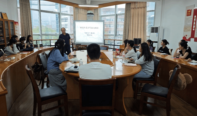科技学院人文学院特聘院长周志锋教授应邀为学院2024级研究生作了题为“研究生读书写论文漫谈”的讲座。讲座由中文学系主任周景耀老师主持。