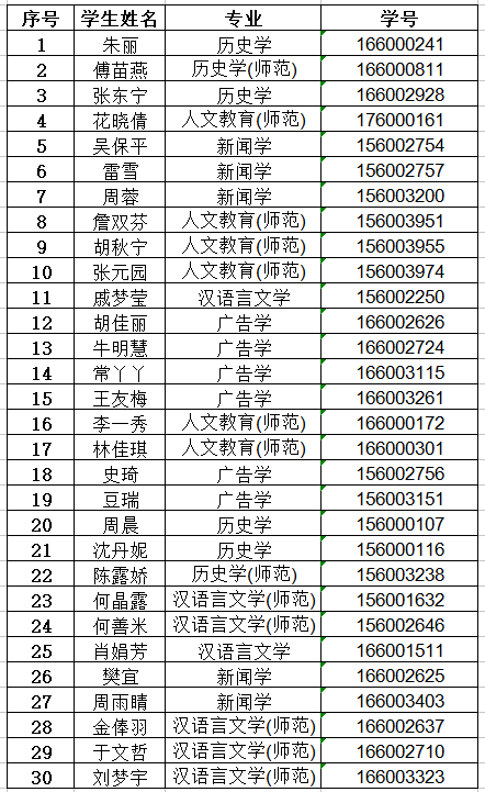 根据《海角视频 本科学生奖学金评选办法》、《关于开展2017-2018学年海角视频 本、专科学生奖学金评定的通知》的相关规定,经学生本人申请,学工办资格复审,学院组织学生工作领导小组联评,现将2017-2018学年“国家励志奖学金”获得者名单公示如下: