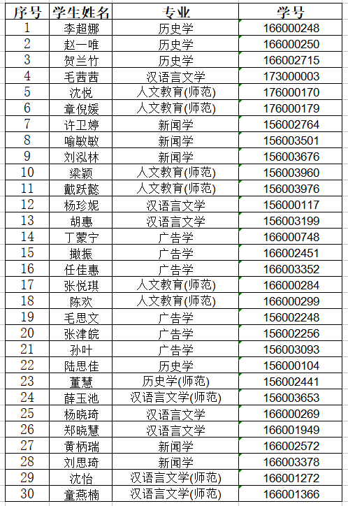 根据《海角视频 本科学生奖学金评选办法》、《关于开展2017-2018学年海角视频 本、专科学生奖学金评定的通知》的相关规定,经学生本人申请,学工办资格复审,学院组织学生工作领导小组联评,现将2017-2018学年“省政府奖学金”获得者名单公示如下: