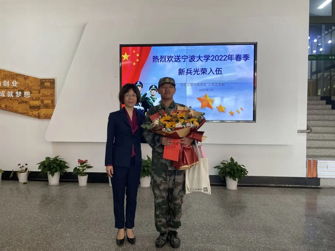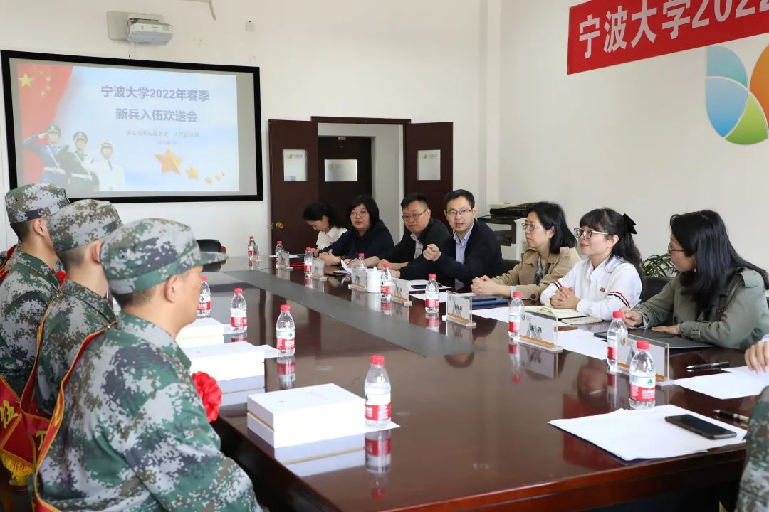 会议最后,校党委副书记童晓晖对即将奔赴军营的8位同学表示热烈祝贺,并提出了殷切期望。他指出,军营是一个大熔炉、大学校,希望同学们一要树立从军报国的理想,争当绝对可靠的忠诚卫兵;二要有吃苦的思想准备,争当本领过硬的卓越尖兵;三要苦练军事本领,争当保家卫国的热血精兵。同时,希望大家投身火热军营后,多跟母校沟通交流,宁大永远是同学们的家。