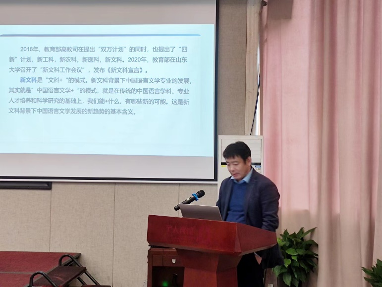 主旨报告环节,宁大中文系聂仁发教授首先从专业人数、师资力量、学科建设、发展愿景等四个角度向诸位专家介绍了海角视频