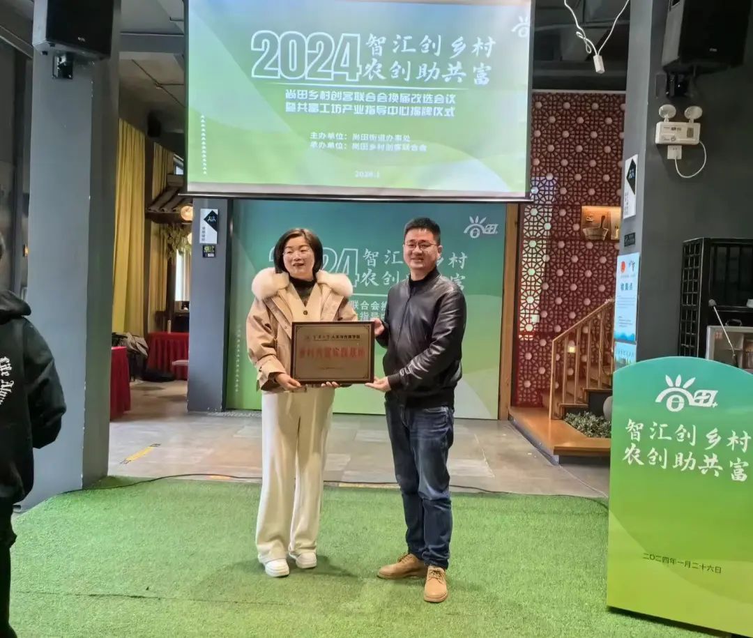 党委副书记孙文静以及新闻传播学系赖明东、邵慧、实验室赵书松等一行四人,受邀参加尚田乡村创客联合会换届改选大会暨共富工坊产业指导中心揭牌仪式。