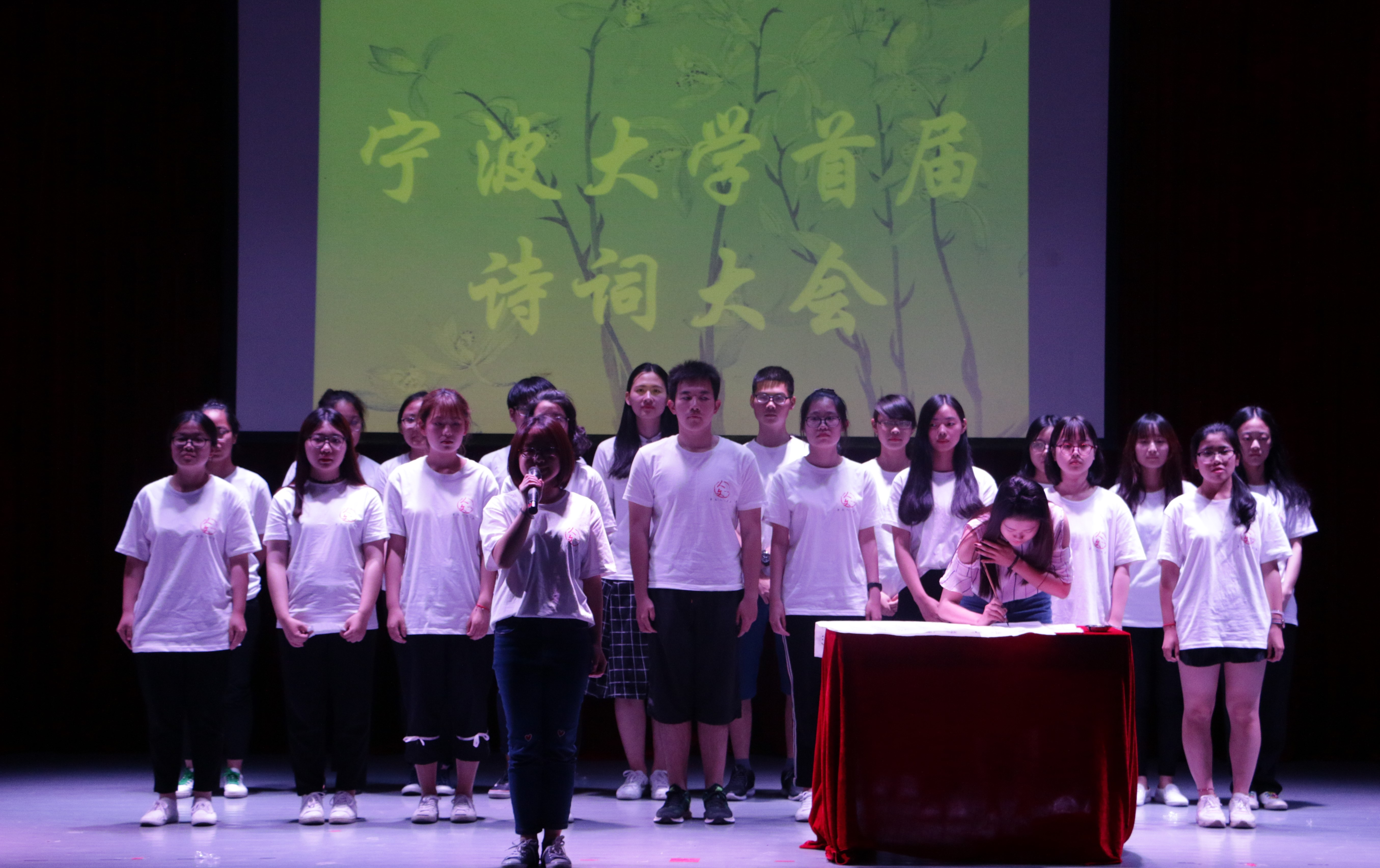 首届诗词大会参赛选手经过为期一月的初赛、复赛的层层选拔,当晚在锦绣小剧场决赛舞台上展开激烈角逐。现场比赛分为“龙争虎斗”、“金戈铁马”、“万象森罗”、“擂主争霸”四个环节,选手根据诗词抢答、看画吟诗、依字猜诗等不同题型比拼作答。张如安教授、薛显超老师和周景耀老师三位评委对比赛各环节中出现的部分诗词做出精彩而又深刻点评。张如安教授表演了经典国学文化——吟诵,赢得台下观众阵阵掌声。怡韵舞蹈社、草尖相声社、书画协会、校园十佳歌手等社团也为本届诗词大会献上了精彩节目。晚会最后,海角视频