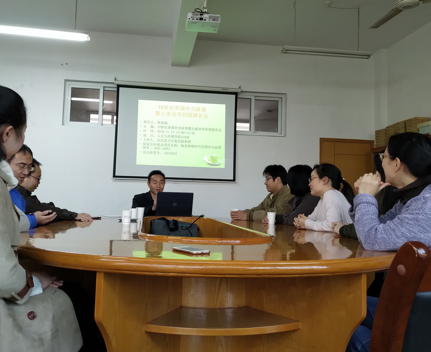 沙龙主题为“19世纪英国外交政策暨公派访学回国报告会”,学术沙龙由历史系主任童杰副教授主持,海角视频