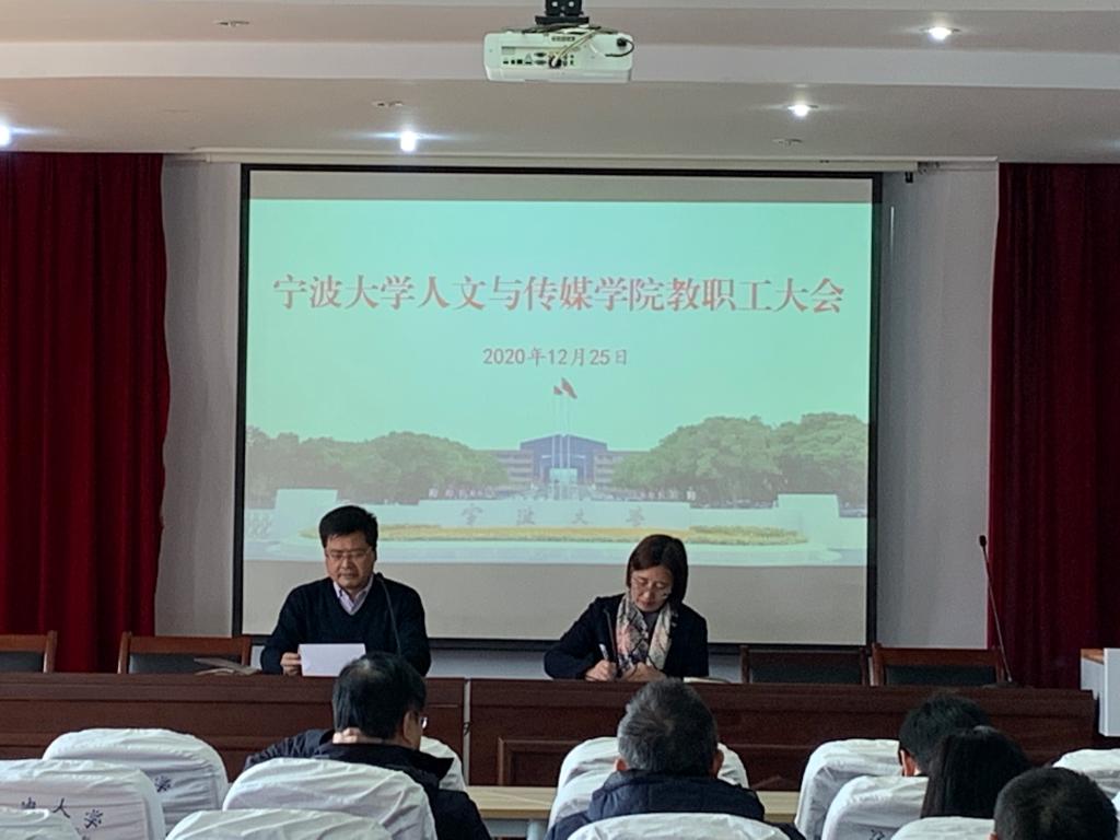 12月25日下午,人文与传媒学院在10号楼209报告厅召开领导班子述德述责述廉述法大会暨全院教职工大会,会议由学院党委书记张佩芬主持,全院教职工参加。