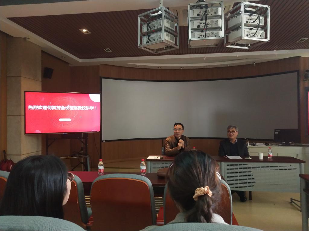 何会长知识渊博,谈吐幽默,而且每到讲座的重点之处,均会播放相关的工作视频,来配合讲解。于是,声情并茂之下,让人仿佛身临其境,备受震撼,获得在座师生的一致好评。