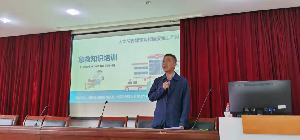 党委副书记朱学庆老师主持,由中国科学院大学宁波华美医院任姣姣护士长主讲。学院师生在讲座过程中积极地学习心肺复苏知识,并现场练习心肺复苏动作。