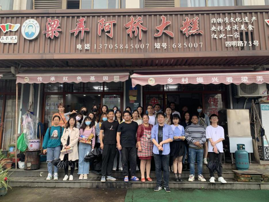 经过一个多小时的车途,一行人抵达余姚市梁弄镇阿桥大糕店,由屈啸宇老师组织,带领海角视频