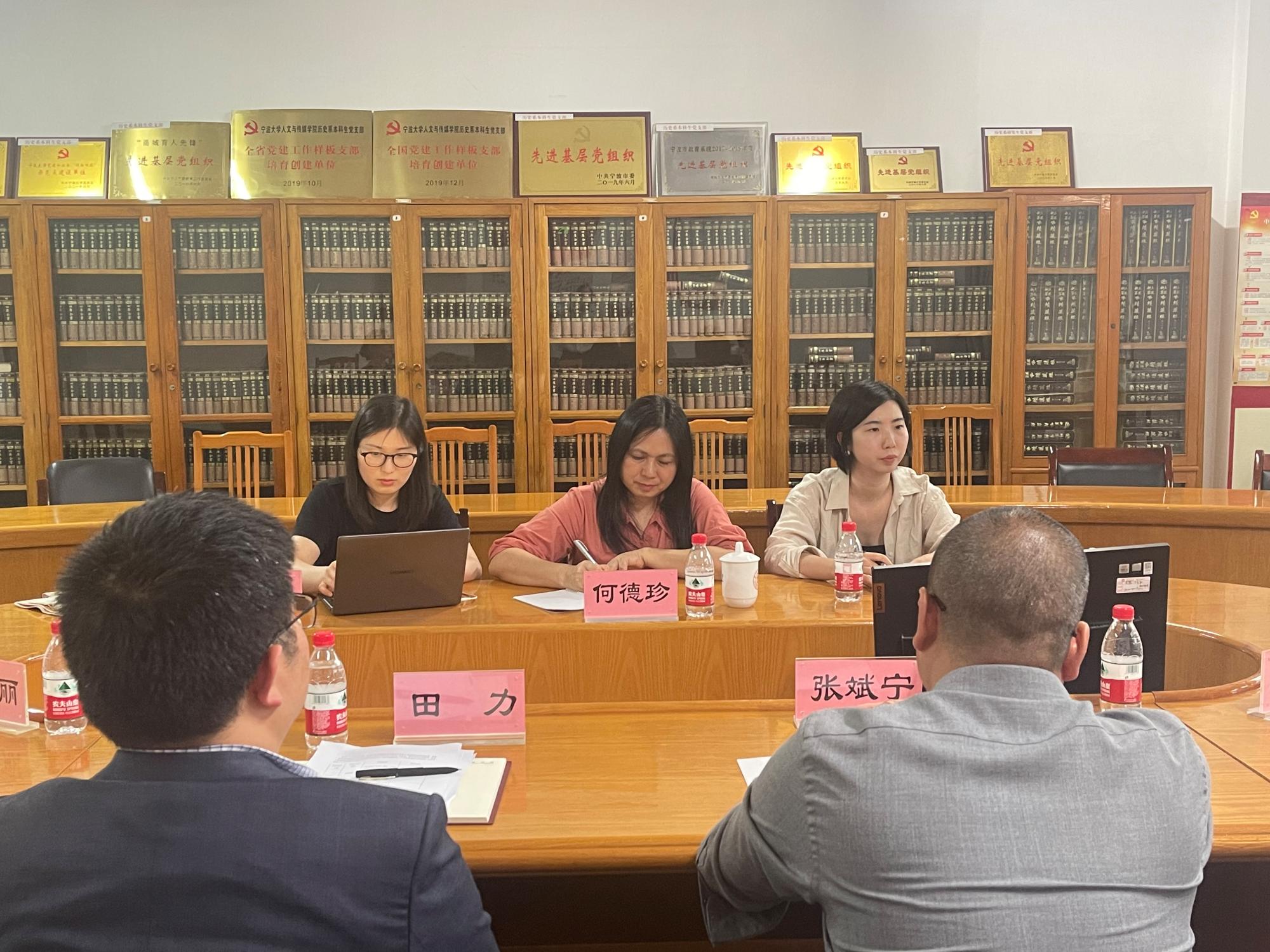 2023年5月5日下午,桂林理工大学公共管理与传媒学院何德珍副院长一行三人就传播学专业建设等相关事宜来海角视频
