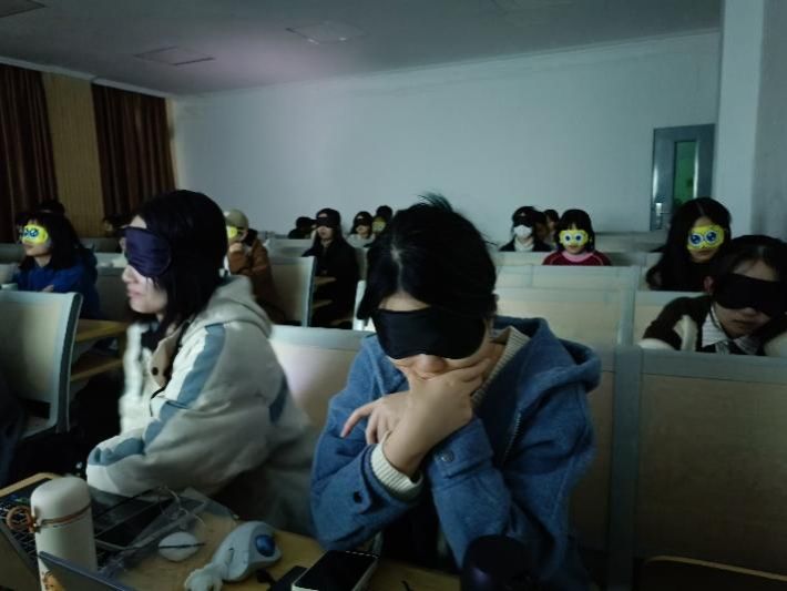 期末季来临,“声声点灯”无障碍电影公益解说团队走进《文化产业概论》课程,分别带领2023级传播学、汉语言文学、历史学专业和2022级汉语言文学专业的同学走进“蒙眼影院”,走进视障人士的世界。
