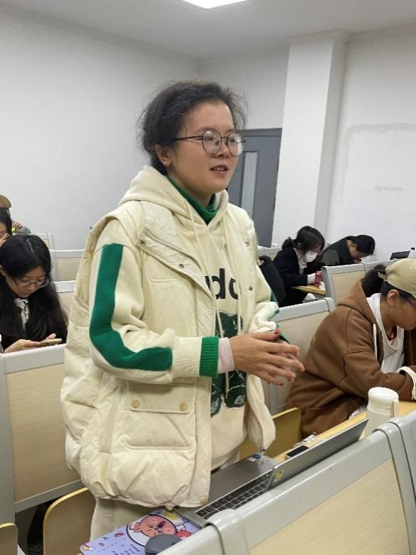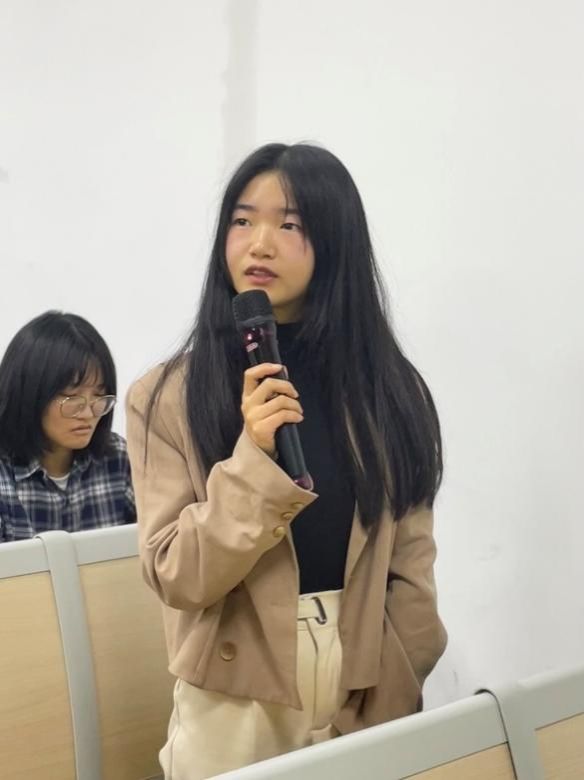 在活动中,为了使同学们对无障碍电影和声声点灯项目有初步的了解,首先由团队指导老师邵慧老师作为“滨海宁波 书香四季”后浪领读人分享的无障碍书籍《听见 看见——影视媒体的无障碍传播研究》进入,引出了“声声点灯”团队成立的背景故事。接着,团队负责人林文雯同学进一步讲解了无障碍理念、口述影像的历史、团队在社区和校园里的无障碍公益电影的实践,帮助同学们更好地理解“无障碍电影”。之后,同学们观看了由“声声点灯”团队制作的无障碍电影《我和我的祖国·夺冠》。在观影过程中,同学们戴上眼罩,以感观缺失的方式“观看”影片,亲身体验视障人士的感官世界。