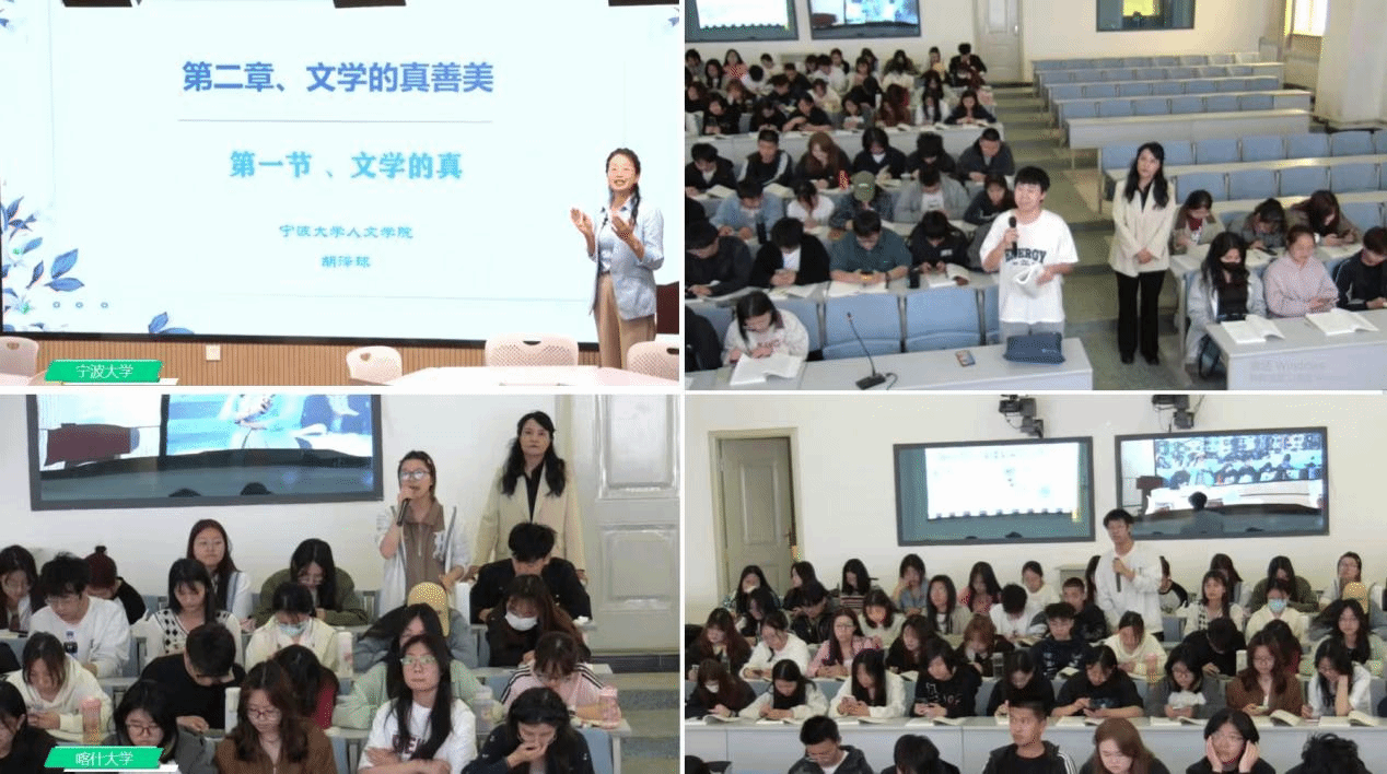 省级一流课程主讲教师胡泽球副教授与喀什大学人文学院杨波教授、再纳汗·阿不多副教授共同开展了《文学概论》课程的“同步课堂”直播教学和在线教研活动,这是东西部教育资源实现共享共创的一次推进,也是中西部教师教育教研相互碰撞的一次火花。