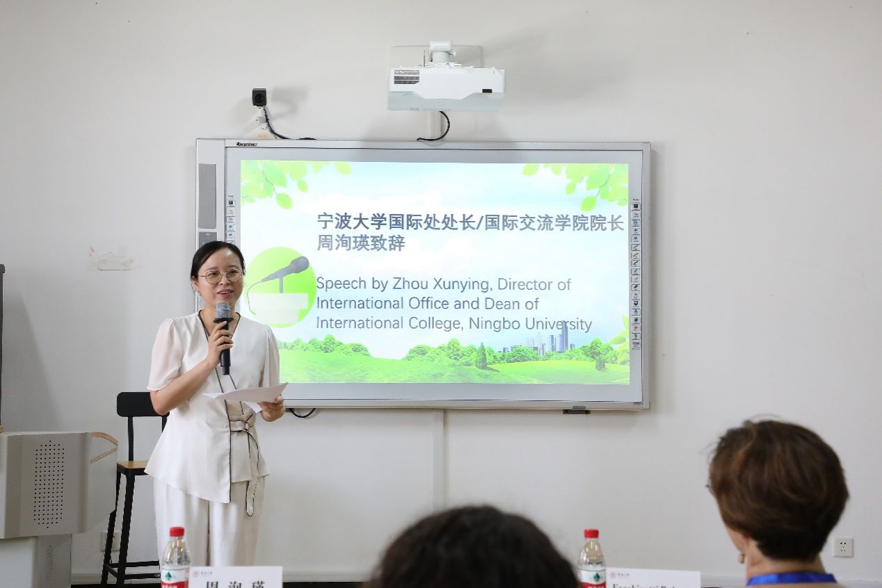 意大利维罗纳大学外国语言与文学学院院长Facchinetti Roberta表示很高兴来到宁波,她谈到了从确定到宁大访问到现在几个月以来的心路历程,介绍了维罗纳大学的中国语言文学教育教学历史。师生于2014年开始学习中文,逐步了解中国语言文化,学生们非常努力,一步步走到现在。她希望两校友谊长存,未来有更多交流合作。