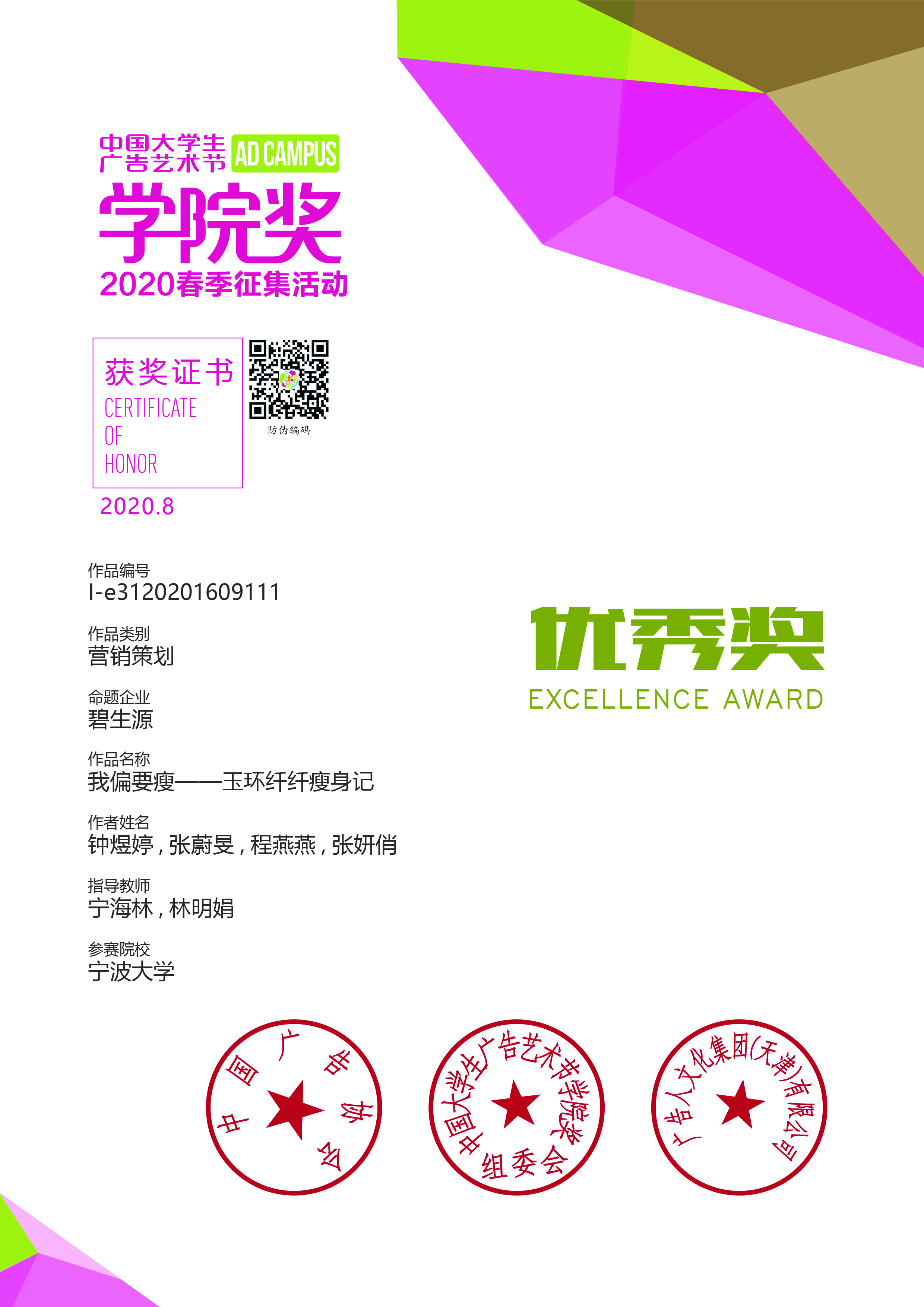 2020学院奖春季赛(优秀奖)(营销策划类)《我偏要瘦——玉环纤纤瘦身记》18广告钟煜婷、张蔚旻等